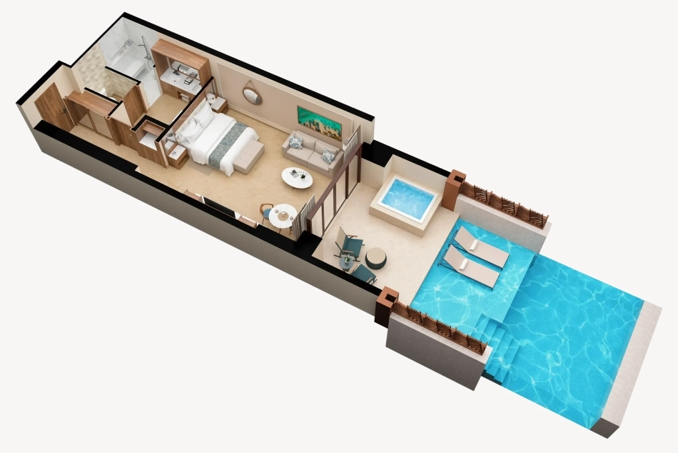 Wake up to a dip in your private pool or take a moonlit swim under the stars. Revel in luxury amenities crafted just for you: premium liquors, a daily-stocked minibar, 24-hour room service, and aromatherapy. The best part? Your suite boasts amazing views of the Caribbean Sea.